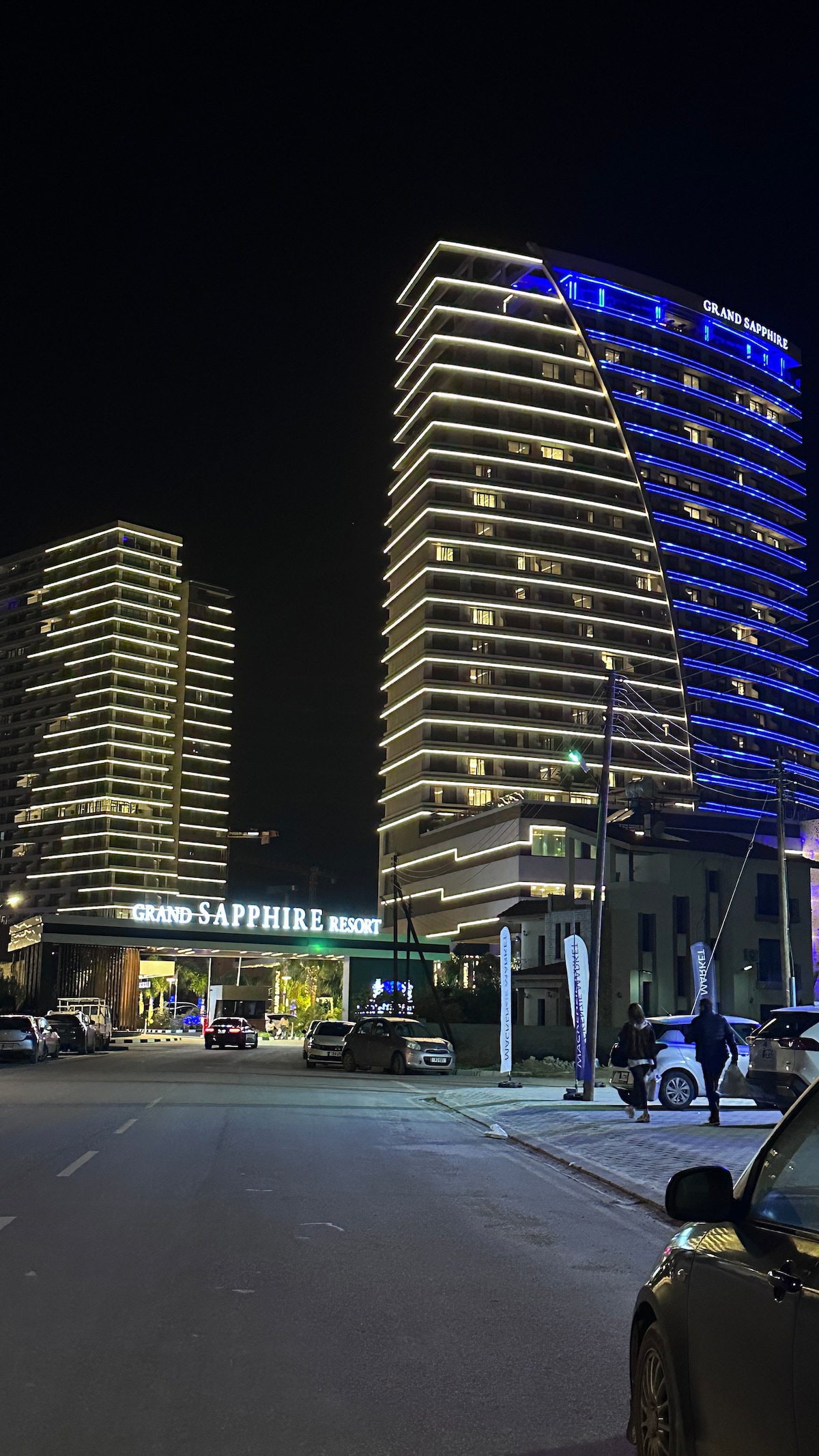 Enjoy a delightful stay in this modern apartment located on the 25th floor of the Grand Sapphire Residence in Iskele, North Cyprus The apartment features a fully equipped kitchen,a bedroom with a double bed,and a comfortable sofa bed in the living room It also offers a beautiful terrace with an outstanding view of the sea,pool,and resort Guests can enjoy the luxurious hotel facilities, including swimming pools, restaurants, and the casino, for an unforgettable stay in a lively seaside atmosphere