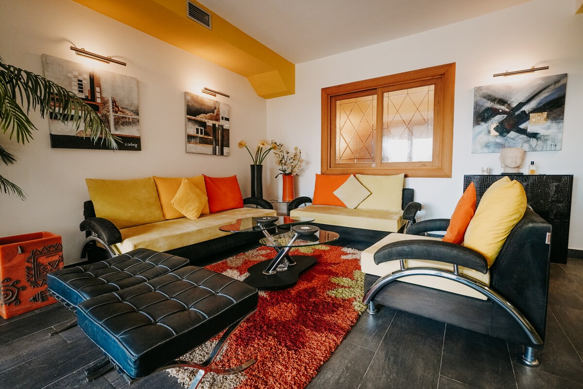 Willa położona +/- 30 minut od Gueliz i Medyny w uroczej, całodobowej, bezpiecznej posiadłości ze wspólnym kortem tenisowym i prywatnym basenem. Willa składa się z 3 bardzo dużych apartamentów, każdy z kominkiem, telewizorem (bezpłatny Netflix), 3 łazienkami, małym podgrzewanym basenem kryty, prywatnym basenem zewnętrznym i prywatnym ogrodem, salonem z kominkiem. Stół do jadalni zamienny w stół bilardowy lub ping pong. Cicha willa.