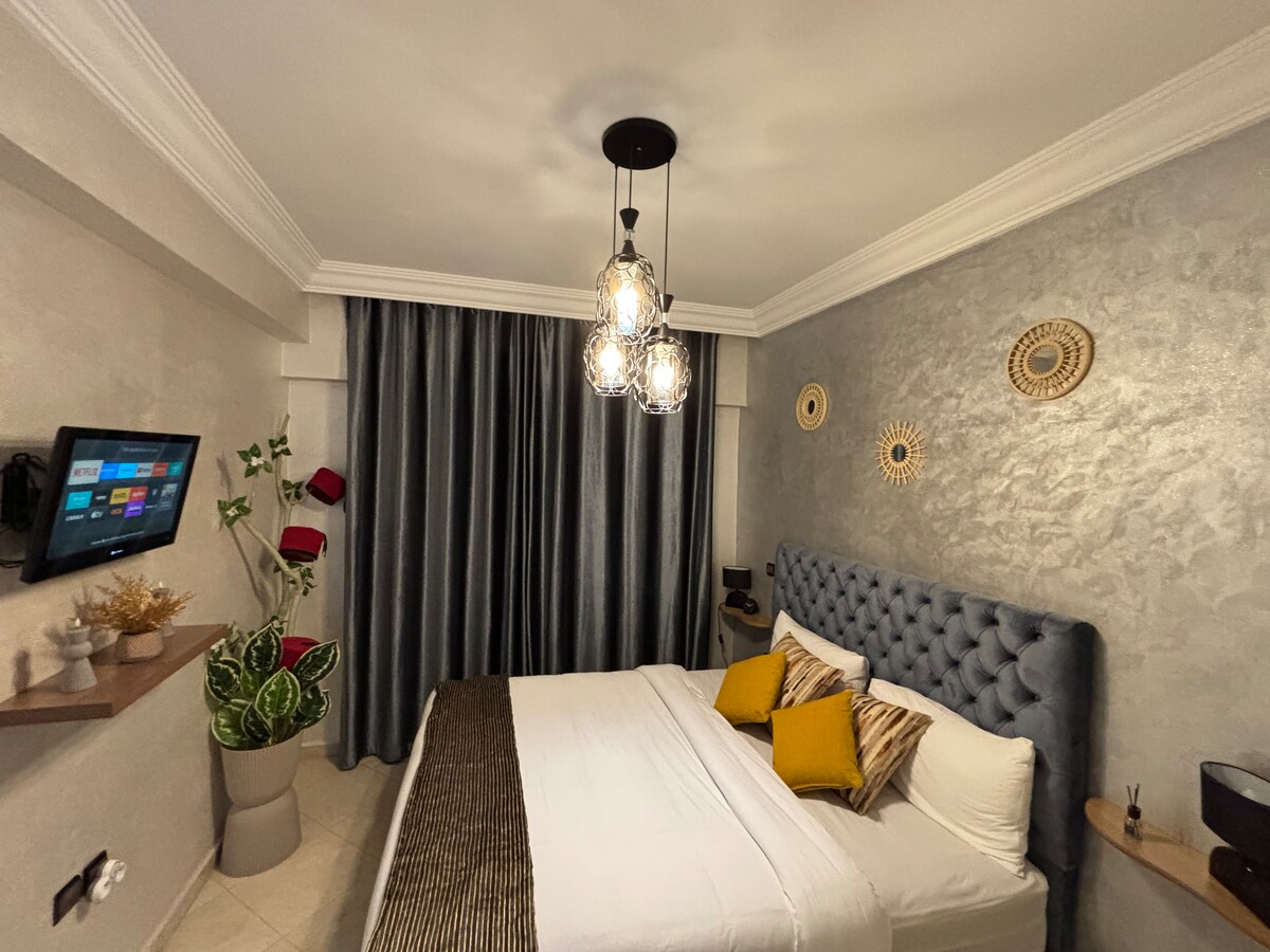 Piękne, umeblowane i dobrze wyposażone mieszkanie w Temara Odkryj to piękne, nowoczesne mieszkanie położone w bezpiecznej i rodzinnej rezydencji. W pełni umeblowane i wyposażone na komfortowy pobyt Winda dostępna Bezpłatny parking podziemny dla Twojego spokoju Duży przestronny ogród na terenie rezydencji Cicha okolica, idealna dla rodzin i osób szukających spokoju Nieakceptowane są pary niezamężne (wymagany akt małżeństwa).