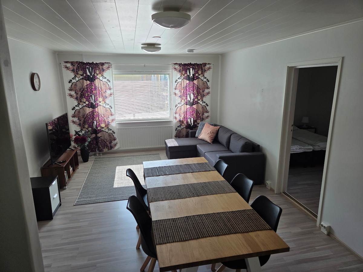 Apartament w Kaakkur, Oulu, z doskonałymi usługami i transportem. Różnorodne szlaki turystyczne, a także boiska sportowe, a zimą trasy narciarskie zaczynają się tuż za drzwiami. Sklepy i restauracje w pobliżu: np. Citymarket, sklep internetowy, całodobowy S-market, gdzie znajdują się również punkty ładowania samochodów (900 m). Szybki internet do pracy zdalnej i wiaty garażowej nr 8 z podgrzewanym słupkiem. Łatwo zjechać z autostrady do mieszkania. Chcę Cię powitać, sprawić, że poczujesz się komfortowo podczas pobytu i upewnić się, że mieszkanie spełnia Twoje oczekiwania.