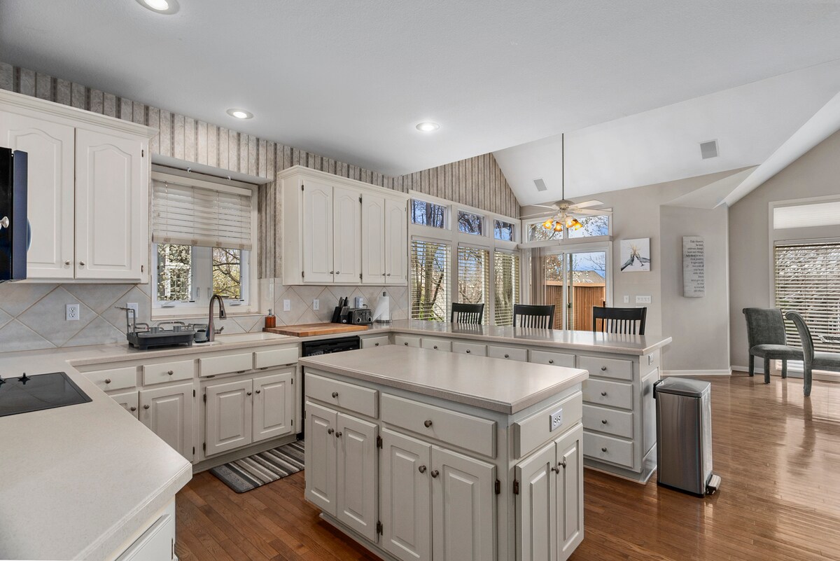 Witaj w Overland Park! Ta przestronna kamienica jest idealnym domem na rodzinne wakacje/podróż służbową: Znajduje się w cichym i bezpiecznym cal-de-sac, a jednocześnie blisko wszystkiego! W odległości spaceru od parku i sklepu Target; 5 minut jazdy od restauracji i sklepów, a także sklepów spożywczych. Łatwy dostęp do głównych autostrad. Ten dom jest wyposażony we wszystko, czego potrzebujesz: pralka/suszarka; naczynia do gotowania; łóżeczko/kojec dostępne na życzenie. Materac z pianki memory. Piękne prywatne podwórko i garaż na 2 samochody.