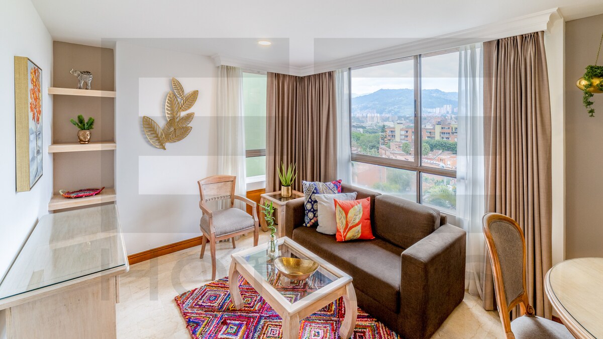 Apartament z widokiem na miasto w Poblado z klimatyzacją • Spacer do centrów handlowych