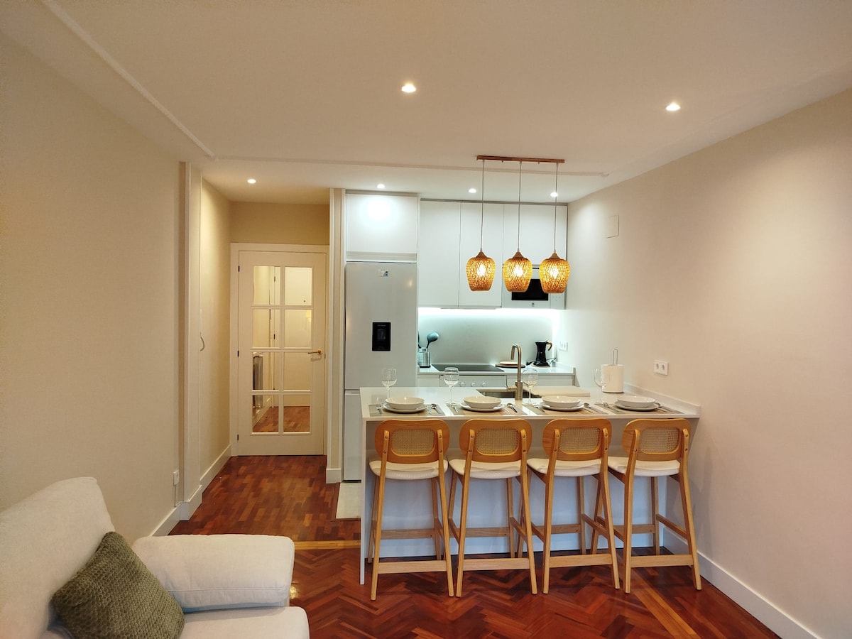 Fantastyczne, świeżo odnowione mieszkanie w nowoczesnym stylu, w samym sercu Oviedo. 3 pokoje z łóżkiem o szerokości 1,35 m w każdym, 2 łazienki z brodzikiem. W pełni wyposażona kuchnia z wszystkimi urządzeniami i naczyniami. Mieszkanie jest zewnętrzne, z widokiem na miasto, bardzo jasne i spokojne. Dostęp do Wi-Fi i samodzielne zameldowanie. Parking obok wejścia. Doskonała lokalizacja. Łatwy i bezpośredni dojazd samochodem od głównego wjazdu do Oviedo.
