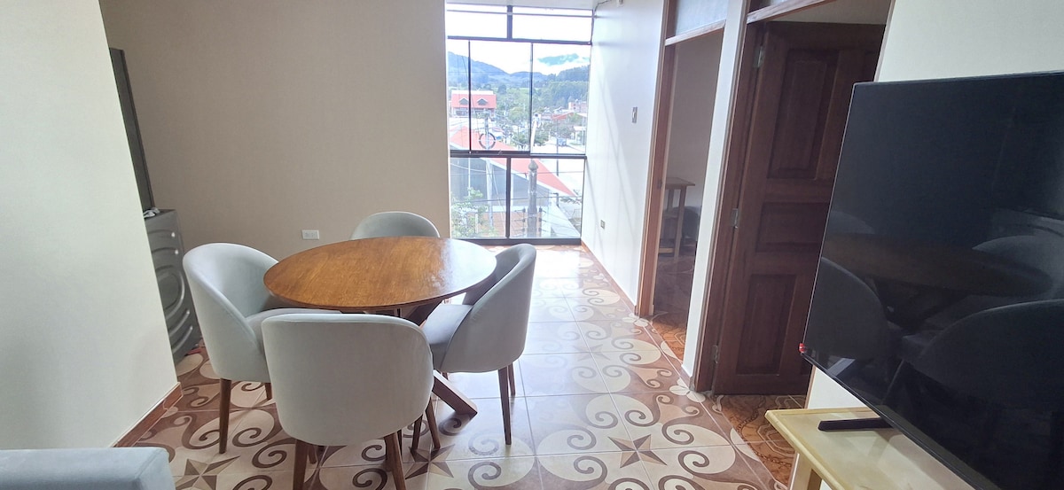 Przytulny nowy apartament w centrum Oxapampa dla 1-2 osób. W pełni wyposażona kuchnia, wygodne łóżko i łazienka Idealne do zwiedzania miasta i jego naturalnego otoczenia. Blisko restauracji, sklepów i miejsc do zwiedzania. Zarezerwuj teraz i ciesz się wygodnym pobytem!