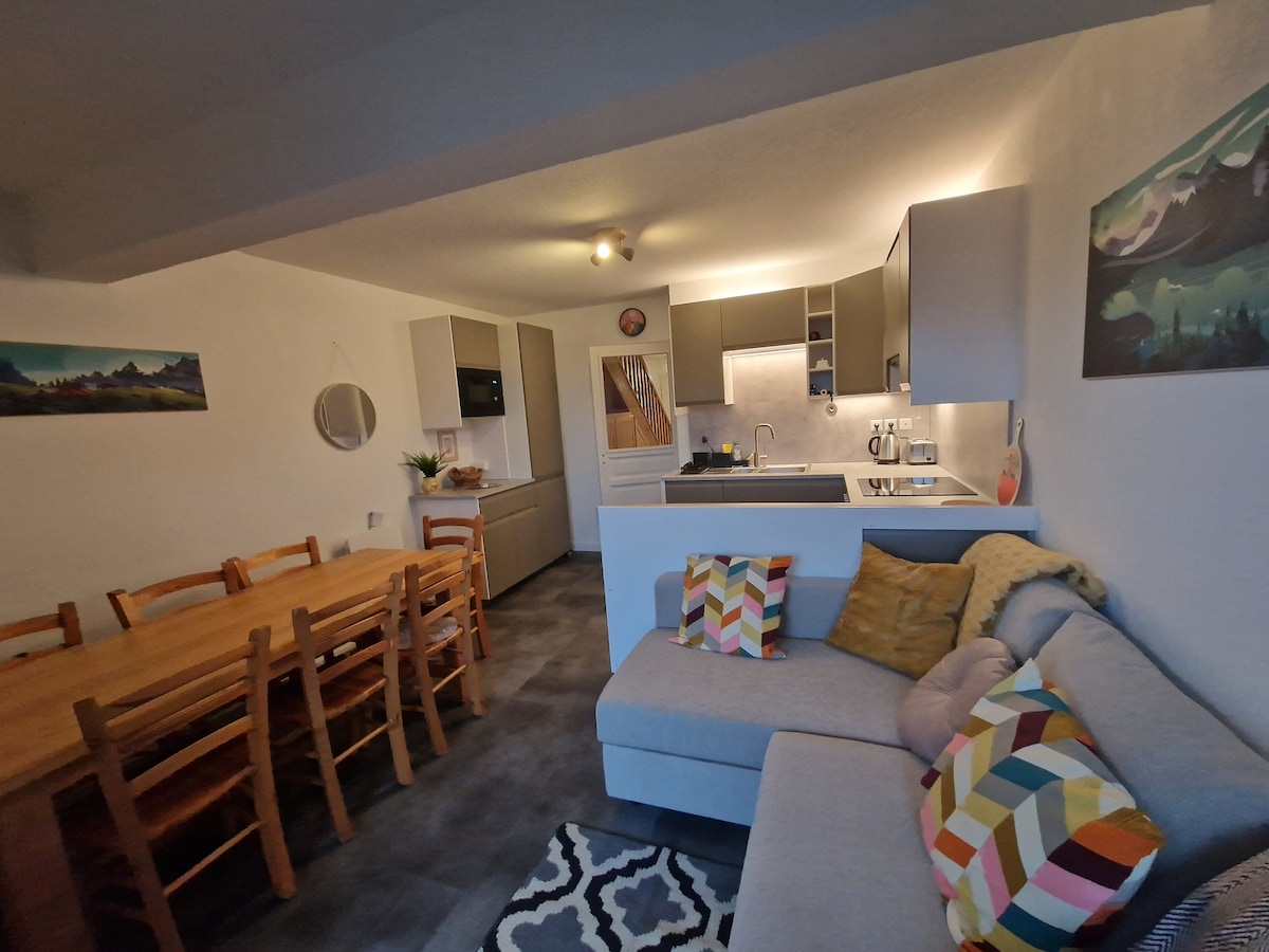 Ciesz się łatwym dostępem do wielu udogodnień w tym rodzinnym, przyjaznym ośrodku z tego niedawno odnowionego, przytulnego (23 m2) apartamentu typu studio. Sleeps 4: 2 in the convertible beds set up as a double or 2 single in the main area and 2 in the "coin de montagne" in bunk beds. Posiada balkon wychodzący na zachód z pięknym widokiem na Belledonne i szafkę narciarską. Posiadamy kolejne 2 studia na tym samym korytarzu, które moja żona (Superhost) wynajmuje od 2020 roku.