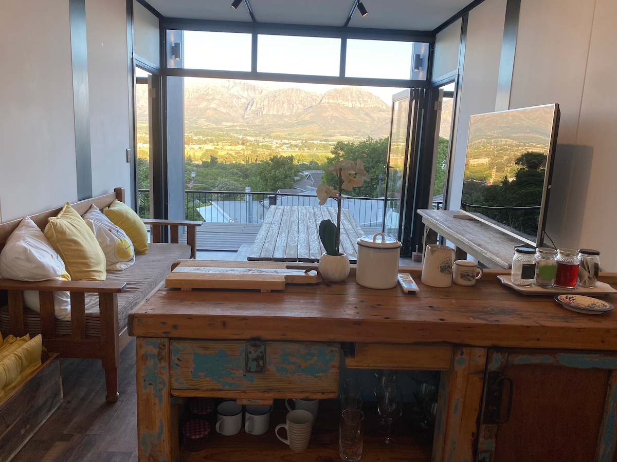 Położony nad winnicami na działającej farmie, Sneeukop Mountain Cottage oferuje niesamowite 360-stopniowe widoki na góry i otaczające je fynbosy. Domek jest całkowicie prywatny, znajduje się obok głównego domu właściciela i ma oddzielny parking. Droga prowadząca z głównej drogi do domku jest żwirowa – doświadcz życia poza siecią i ciesz się spektakularnymi widokami na góry, winnice i fynbos, jadąc między winnicami.