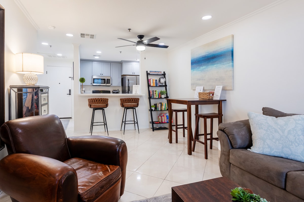 Zjedz posiłek na świeżym powietrzu na bujnym dziedzińcu w stylu toskańskim z bulgoczącą fontanną i brzęczącymi kolibrami. Wewnątrz odkryj uspokajającą atmosferę w przestrzeni z ponadczasowymi, klasycznymi meblami i podestem z widokiem na tylne patio. Urocza sypialnia z łóżkiem typu king, okiennicami, biurkiem z widokiem na ogród, wspaniałym parkingiem, to słoneczne piętro ma również chłodną morską bryzę, na którą zwykle można liczyć. Bardziej dwupoziomowy, ponieważ dzielimy tylko jedną ścianę z sąsiednim mieszkaniem.