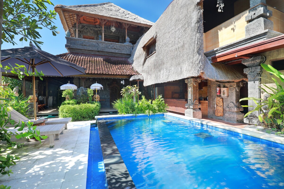 To stylowe miejsce pobytu jest idealne na grupowe podróże. Jest to jeden z piętnastu apartamentów/studiów w pięknym rodzinnym zajeździe. Studio jest samowystarczalną jednostką w bezpiecznej ekskluzywnej dzielnicy. Składa się z dużej sypialni i części dziennej, która zapewnia dodatkową przestrzeń do spania i relaksu, kuchni/jadalni i basenu we wspólnym ogrodzie na dziedzińcu. To studio ma świeży wystrój wnętrz i znajduje się w centrum Seminyak, zaledwie kilka kroków od plaży
