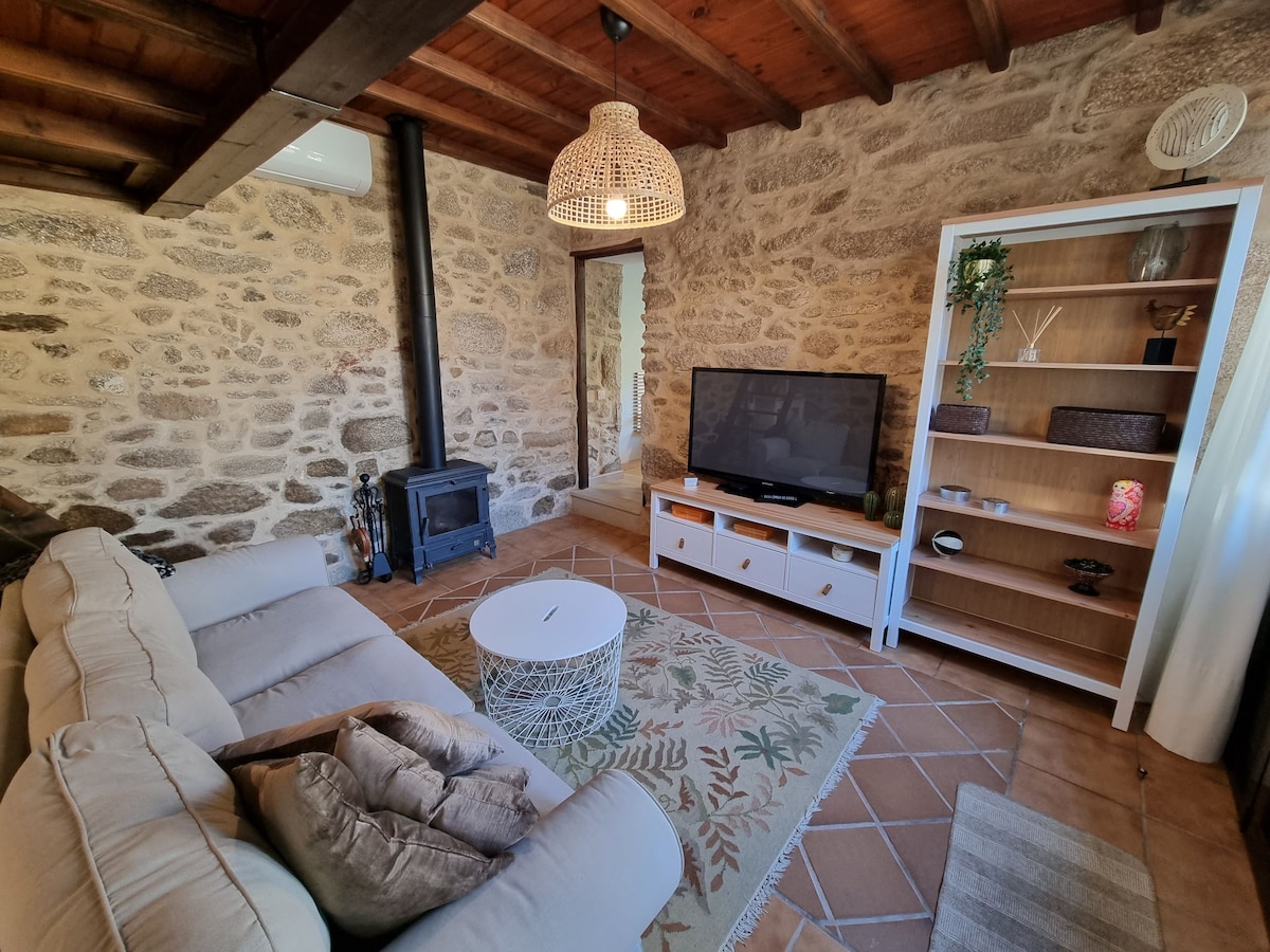 Casita de piedra restaurada a menos de 10 minutos de Santiago, 25 de Noia, 40 de Sanxenxo o Ribeira y 1 hora de Finisterre. Capacidad para, máximo, 4 personas, habitación con cama de 160 cm y altillo abuardillado con cama de 150 cm. Baño con ducha, acumulador de 100 litros. Cocina equipada, menaje, inducción, nevera, tostadora, cafetera, horno, etc. Terraza privada con sillas, mesa, barbacoa y un hórreo. Aparcamiento privado dentro de la propiedad, y exterior. Estufa de leña + AACC.