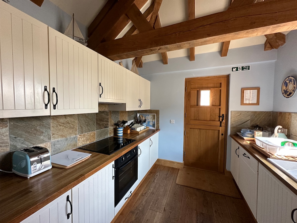 Honeybee to przytulny domek z jedną sypialnią w pobliżu portu Padstow. Dobrze rozplanowany parter domku ma otwarty plan z nowoczesną, w pełni wyposażoną kuchnią w kolorze białym połysku. Jest tu stół dla dwóch osób, skórzana sofa w stylu retro i fotel Laura Ashley w kropki, w którym można się zrelaksować i cieszyć telewizorem Samsung Smart LED. W sypialni dwuosobowej znajduje się piękna wolnostojąca wanna oraz kolejny telewizor Smart TV! Prysznic, toaleta i umywalka Grohe w nowoczesnej łazience. Stół do jadalni na świeżym powietrzu.