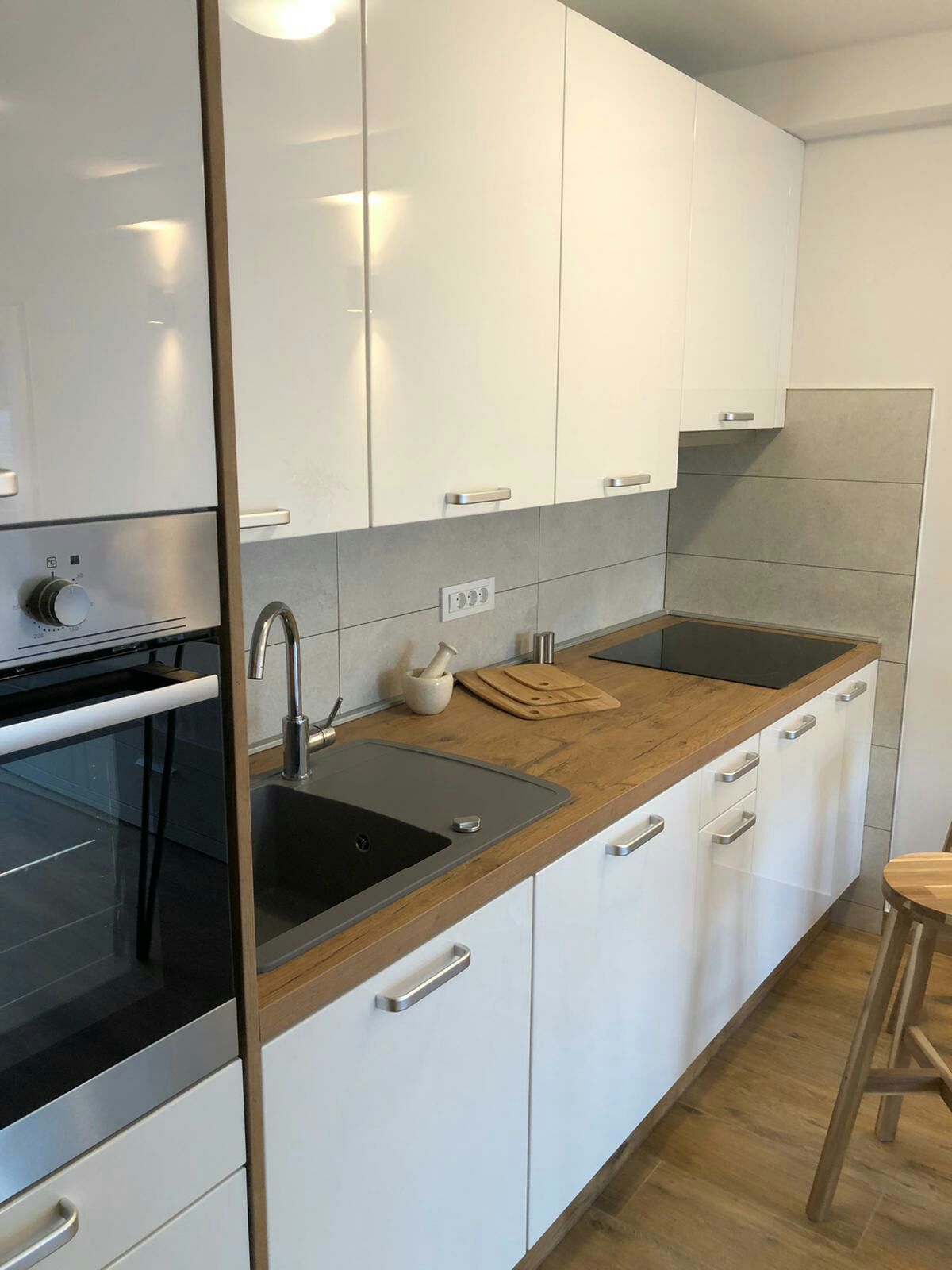 Modern apartment in a quiet family resort Belafuža 2 bus stops from the city center. It has 2 bedrooms, a living room with a truckle bed, kitchen and bathroom. It has its own terrace surrounded by greenery and a separate entrance and parking space.