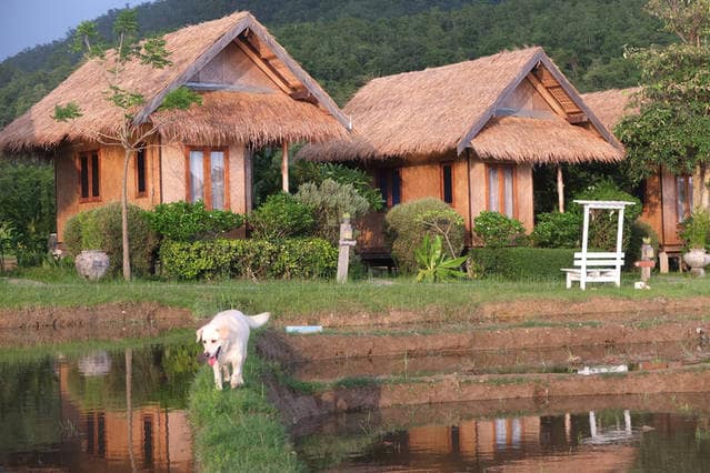 We keep it simple here. 1 km walk from Pai walking street. Peaceful setting tucked away from all the noise. Rise with rooster crowing in the morning with cat and dog playing in the garden, walk in the paddy field and feed the cow with banana during the day, and enjoy quite afternoon sun set. All cottages equipped with aircon and private bathroom. Simple breakfast toast, tea and coffee are available in the morning.