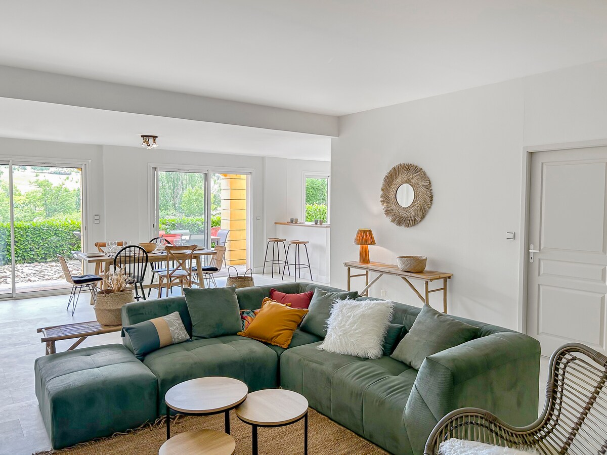 🌾Oaza spokoju w samym sercu wsi🌾 Ten domek o powierzchni 320 m² został zaprojektowany tak, aby łączyć komfort, przestrzeń i przyjazność. Obejmuje 4 apartamenty dla rodziców, sypialnię, jasny salon, dużą jadalnię i w pełni wyposażoną kuchnię. Kryty basen, jacuzzi z widokiem, bilard, boisko do gry w petanque: wszystko, czego potrzebujesz, aby się zrelaksować i dobrze bawić. Idealne na pobyt z rodziną, przyjaciółmi lub na seminaria i rekolekcje w spokojnym otoczeniu.