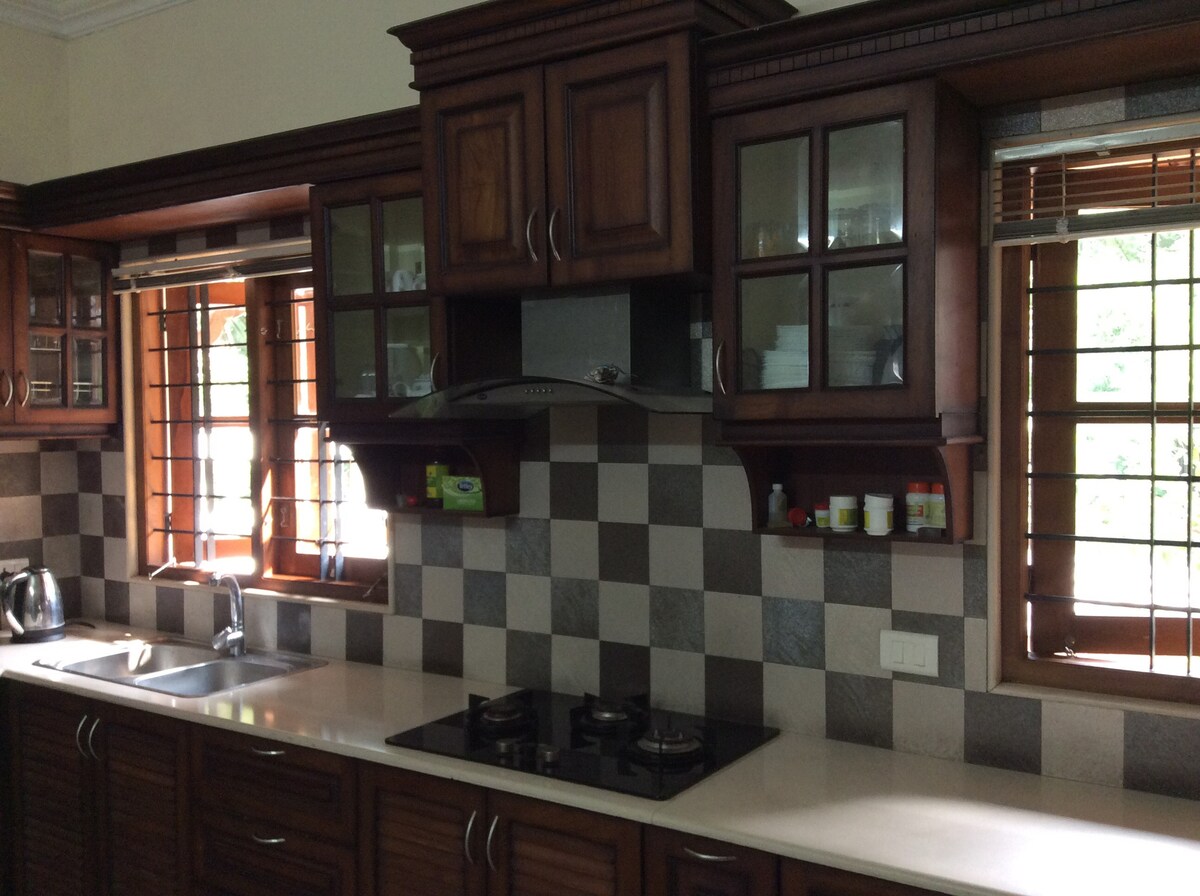Enjoy and relax with the whole family and friends. Beautiful riverside stay in a rustic village. Function hall with mike and speakers. Yoga meditation classes. Enjoy the river in rustic village. Healthy and amazing home made Kerala food. Loving family. BBQ and more..
