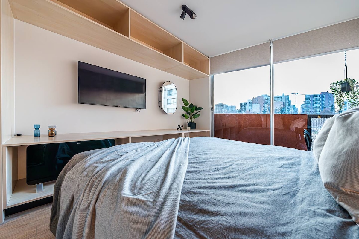 Zrelaksuj się podczas tego wyjątkowego i spokojnego wypoczynku w samym sercu Santiago. Nasze przytulne studio to oaza inspirowana tętniącym życiem Nowym Jorkiem, gdzie elegancja miasta łączy się z komfortem i stylem. Ciesz się doskonałą lokalizacją w centrum miasta, z doskonałą komunikacją miejską, w tym stacjami metra Toesca i Parque Almagro w odległości kilku kroków. Nasze studio to idealne schronienie z szybkim Internetem i klimatyzacją