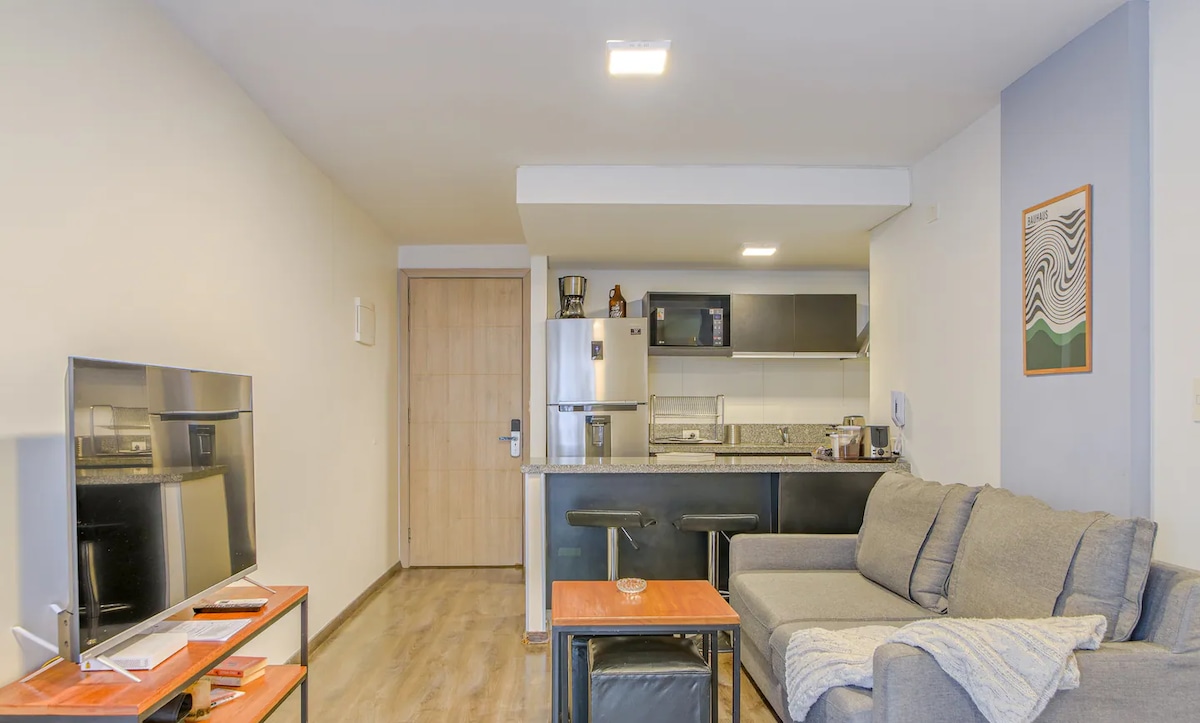 Nowoczesne mieszkanie z 1 sypialnią w Parque Rodó. Jasne i ciche, z dużymi oknami z podwójnymi szybami. W pełni wyposażona kuchnia z lodówką, piekarnikiem, kuchenką mikrofalową, przyborami kuchennymi i zastawą stołową. Otwarta część dzienno-jadalna z 43-calowym telewizorem Smart TV i przestrzenią biurową z Wi-Fi. Sypialnia z łóżkiem typu queen i dostępem do balkonu oraz łazienką z toaletą. Doskonała lokalizacja: kilka kroków od Parque Rodó i Rambla, w otoczeniu kawiarni, sklepów i transportu publicznego.