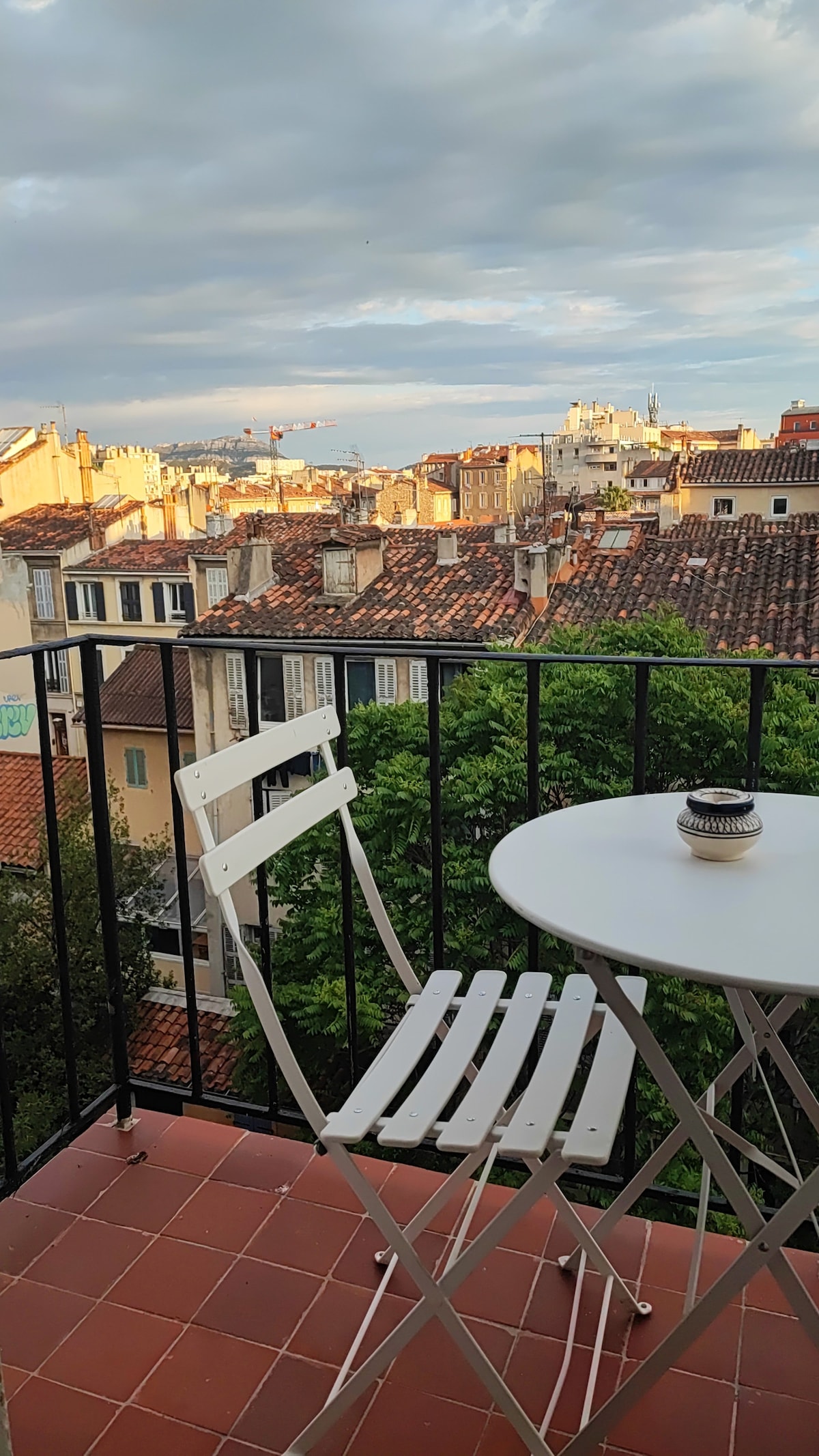 Nasze mieszkanie znajduje się tuż obok Plaine i Cours Julien, 10 minut spacerem od dworca kolejowego Marseille Saint-Charles i starego portu. Z okien widać całą Marsylię, a cały dzień w mieszkaniu jest pełno światła. Słońce wschodzi po stronie wzgórz, na naszym balkonie, gdzie można zjeść śniadanie. Z kuchni, po stronie morza, można obserwować jego zachód. Na balkon można wyjść z jednej z dwóch sypialni oraz z salonu, który składa się z części wypoczynkowej i dużego stołu do spożywania posiłków.