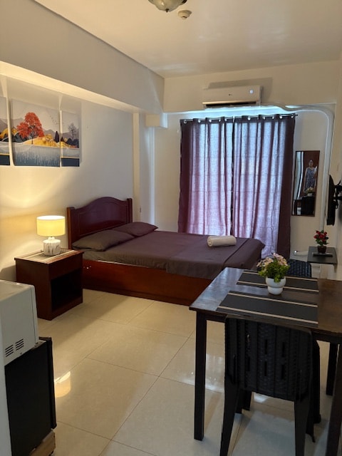 Ciesz się stylowym doświadczeniem w tym centralnie położonym miejscu przy Air Residences, Ayala Avenue na rogu Malugay Street. Z apartamentu roztacza się wspaniały widok na panoramę Makati. Powierzchnia handlowa znajduje się na parterze (1. Air Mall 2. Rise:Assembly Grounds) for coffee, resto or grocery needs Blisko wejścia/wyjścia, jeśli jedziesz lub przyjeżdżasz z lotniska. Posiada łóżko typu queen size z wysokiej jakości materacem sprężynowym dla wygodnego snu.