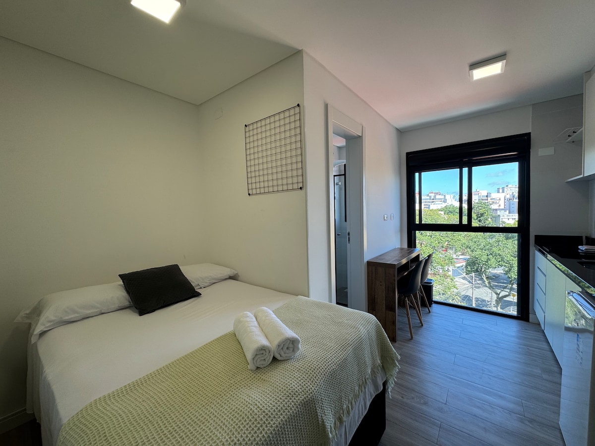 Kompaktowe i kompletne studio dla osób poszukujących praktyczności, to świetna lokalizacja podczas pobytu w Kurytybie. 📍 Położony w dzielnicy Água Verde. Blisko supermarketu, barów i sklepów w okolicy. 🚗 Zadaszony garaż wliczony w cenę rezerwacji. ✨ Zapraszamy! ✨ 🚫 Niedozwolone jest: palenie; Zwierzęta domowe; Przyjmowanie osób spoza poinformowanych gości. 🚫