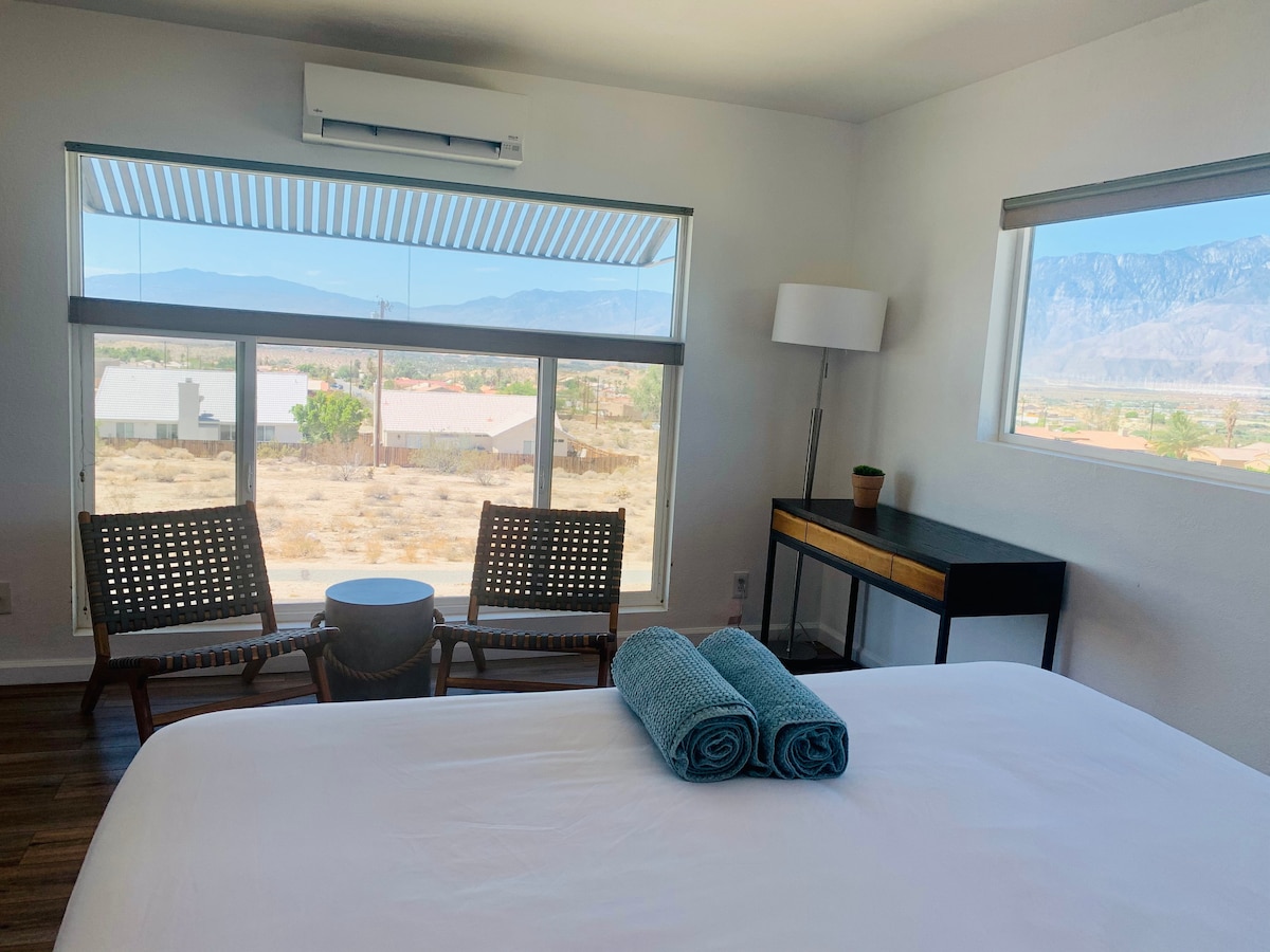Ciesz się pięknem Palm Springs w naszym studiu, w którym znajduje się duże łóżko i łazienka. W dobrze wyposażonym pokoju znajdują się ręcznie robione meble od meksykańskich rzemieślników, telewizja strumieniowa, bezpłatne WiFi, mini lodówka z minibarem, ręcznie robione młyny i wystrój oraz wyselekcjonowane udogodnienia łazienkowe, takie jak ręcznie robione szlafroki z Oaxaca.