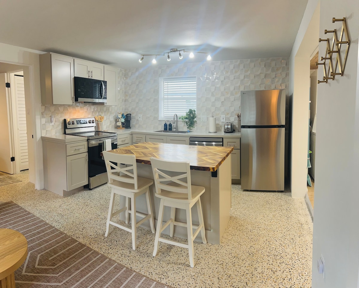 Zatrzymaj się w naszym „Apartamencie Ananasowym”, gdzie będziesz cieszyć się naszym przytulnym, prywatnym apartamentem w naszym domu rodzinnym. W apartamencie masz do dyspozycji własną sypialnię, łazienkę i pokój rodzinny z aneksem kuchennym. Jesteśmy w bardzo bezpiecznej okolicy i doskonale położeni w pobliżu wielu atrakcji na świeżym powietr powietrzu! Plaże, kajaki, jazda na rowerze i wędrówki piesze znajdują się w odległości kilku minut od naszego domu! Znajdujesz się 12 minut jazdy od wyspy Anna Maria, 5 minut od rezerwatu Robinson, 15 minut od IMG i tylko 30 minut od SRQ. Zobacz moje 5-gwiazdkowe recenzje!