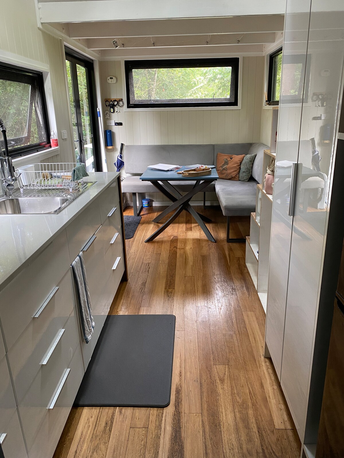 Położony w Darkinjung Country na buszu w Kangy Angy na Central Coast. Creekside Tiny to przyjazna dla środowiska i spokojna przestrzeń. Jeśli chcesz dowiedzieć się, jak wygląda prawdziwe życie poza siecią, spędź kilka nocy na relaksie i ponownym nawiązaniu kontaktu ze sobą i z przyrodą. Samowystarczalne miejsce, które korzysta z energii słonecznej, gotuje na gaz i ma zbiornik ze świeżą wodą. Zostaw swoje urządzenia w domu (nie ma gniazdka 240 V, do którego można by je podłączyć) i po prostu odpręż się! Uwaga: w recepcji można zadzwonić.