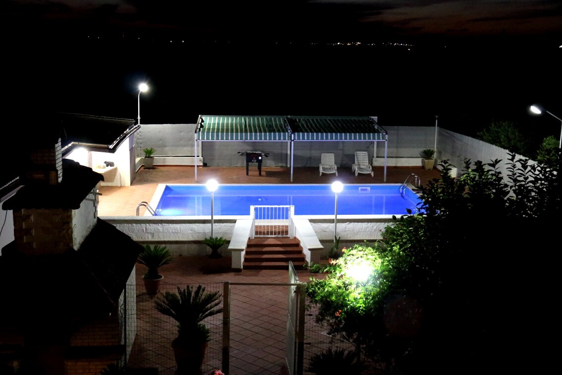 Urocza willa z basenem, otoczona wiekową zielenią, położona mniej niż 10 minut od międzynarodowego lotniska Bari Karol-Wojtyła i 1 km od stacji Santo Spirito. Doskonała lokalizacja do zwiedzania okolicy. Apartament położony w willi oferuje dwie sypialnie z łóżkami małżeńskimi, dwie rozkładane sofy i dwie łazienki, z których jedna jest przystosowana dla osób niepełnosprawnych. Na zewnątrz, urokliwy gaj cytrusowy prowadzi do basenu, wyposażonego w leżaki, parasole, stół i krzesła.