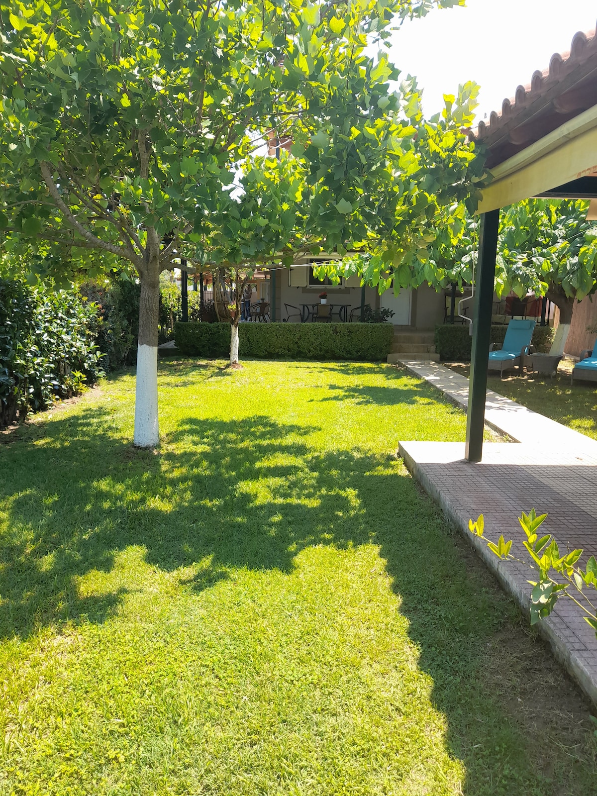 Dom jest niezależną i autonomiczną rezydencją w ogromnym ogrodzie. Składa się z łazienki i salonu z podwójnym łóżkiem. Miejsce do grillowania może być wyposażone w kuchnię i jadalnię, w pełni wyposażoną w kuchenkę elektryczną, grill i tradycyjny piekarnik. Dom znajduje się w cichym miejscu i znajduje się zaledwie 800 metrów od plaży. Wokół znajduje się długa piaszczysta plaża. Plaża Kouroutas i centrum Kouroutas oddalone są o zaledwie 1 km.