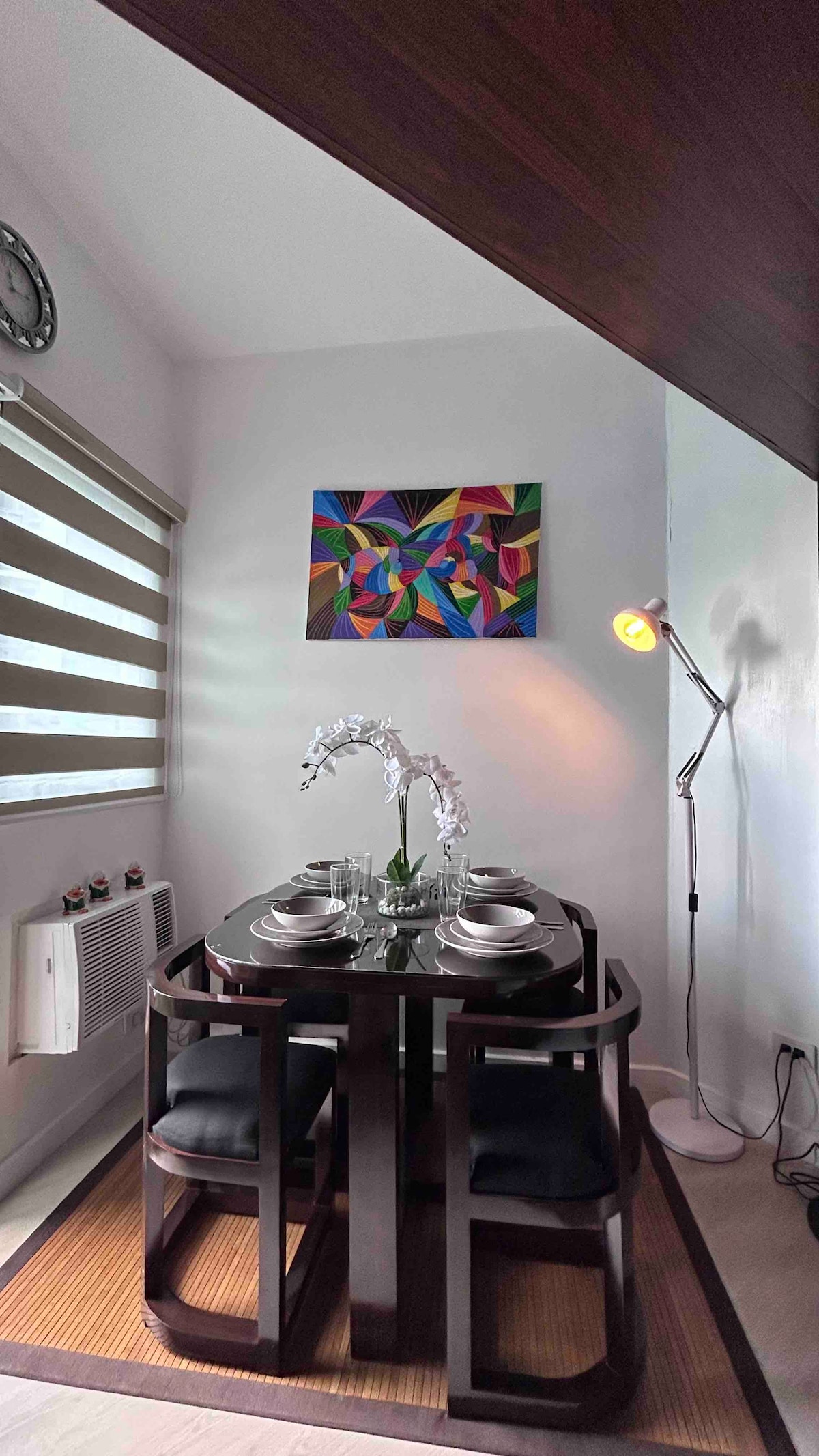 Wybierz się na romantyczny wypoczynek w Azure North Pampanga. Ten stylowy apartament posiada przestronny balkon z oszałamiającym widokiem na basen i miejsce, idealny na wieczory z winem lub poranną kawę. Ciesz się przytulnymi wnętrzami, nastrojowym oświetleniem i spokojną atmosferą idealną dla par, rodzin lub samotnych relaksujących się osób. Położony w budynku klasy premium z udogodnieniami w stylu resortu. Twoje wymarzone wakacje zaczynają się tutaj.