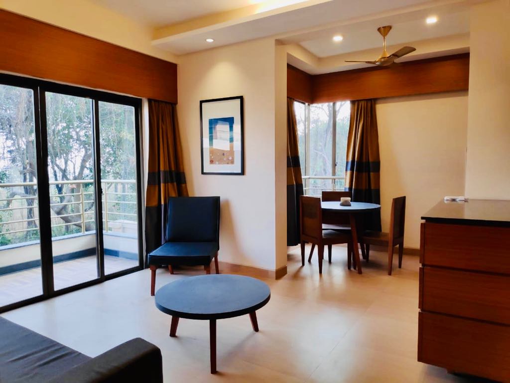 A luxury poolview apartment in North Goa. The Apartment has a breathtaking view of the river from the balcony and the green valley is a bonus. This is a perfect getaway for a couple , a group of friends or a family of upto 4. Located in the middle of the city of Porvorim and very close to the famous mall de Goa and in the center of north Goa, All the hot spots in North Goa (including beaches, party spots, historic places etc) are at a distance of approx 5-10kms.