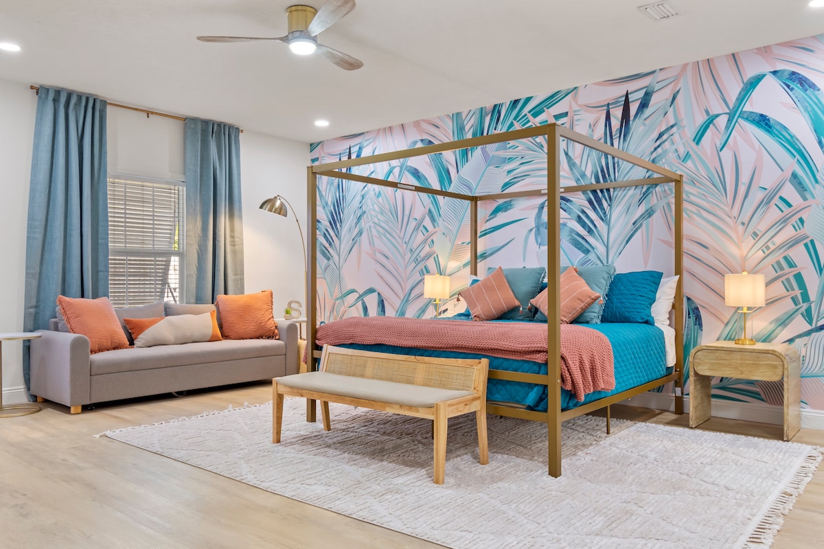 🌴 CASA 🌴 TROPICAL 🌴 Zatrzymaj się w tropikalnym raju! pokoje zaprojektowane przez⭐️ projektantów 🌴 bujna architektura krajobrazu 💦 prywatny basen zmieniający kolor 🍊 zbieraj owoce z drzew cytrusowych (w sezonie) 🥘 niestandardowy grill kamienny 🔥 dwa paleniska 🎲 pokój gier ze stołem do ping-ponga, piłkarzykami, grami planszowymi 🛌 13 osób 🏖 7 minut jazdy samochodem do plaż z białym piaskiem 15 minut jazdy samochodem do Pier Park 10 minut jazdy samochodem do parku wodnego Shipwreck 2 minuty jazdy samochodem do Publix Sportcomplex Blisko najlepszych restauracji w okolicy