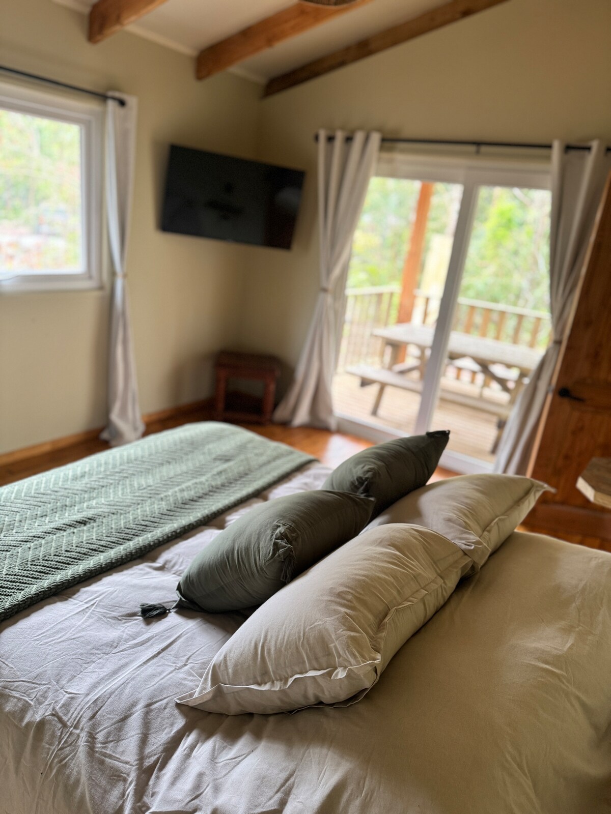 Pobyt w harmonii między naturą a odpoczynkiem. Bezpośredni widok na rzekę San Pedro z krystalicznie czystą wodą, turkusowymi lustrami wody i wieloma spacerami wokół niej. Spływy kajakowe lub tratwy, wędkarstwo muchowe, gorące źródła i stoki narciarskie na poziomie międzynarodowym, oddalone o 1,5 godziny, takie jak Villarrica Huilo Huilo. Zapraszamy do korzystania z tego rajskiego miejsca przez cały rok.