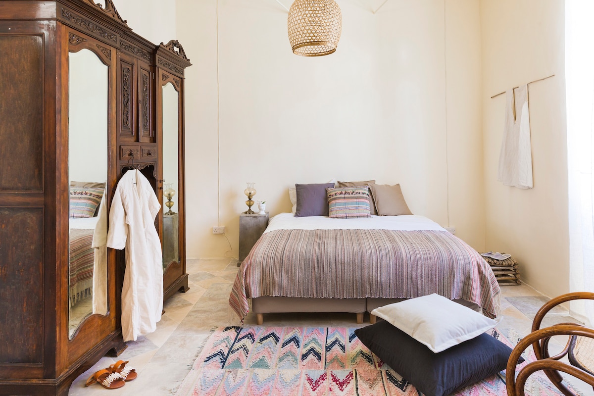 Przemyślany cypryjski dom, odnowiony i zaprojektowany przez gospodarzy Bena i Behiye, z nowoczesnymi meblami z połowy wieku, autentycznymi dziełami sztuki i przytulnymi, stylowymi wnętrzami. Ten spokojny ośrodek oferuje częściowy widok na morze i góry, balkony w każdym pokoju oraz spokojne ogrody z przodu i z tyłu. Położony w spokojnej dzielnicy Çatalköy, zaledwie kilka minut od pięknych plaż Kyrenii, tętniących życiem kasyn i centrum miasta – idealny na komfortowy pobyt na wyspie. Możliwość odbioru z lotniska i prywatnego wynajmu samochodu 🥂