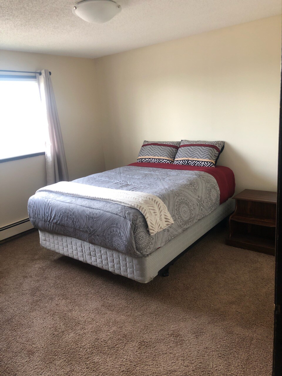 Ten apartament z 2 sypialniami na trzecim piętrze ma wszystko, czego potrzebujesz, aby wygodnie mieszkać i pracować podczas pobytu w Lloydminster. Posiada dwa łóżka typu queen-size z pościelą i ręcznikami wliczone w cenę. Obejmuje Telus Cable with Sports, Internet Router, Comfortable Love Seat and Double Recliner, Dining table/chairs, and a fully stocked kitchen with Dishwasher, Keurig, Microwave, Toaster, Pots, Pans, Cutlery, Utensils and Dishes. Właśnie umieściliśmy w mieszkaniu nową wannę, toaletę i zmywarkę!