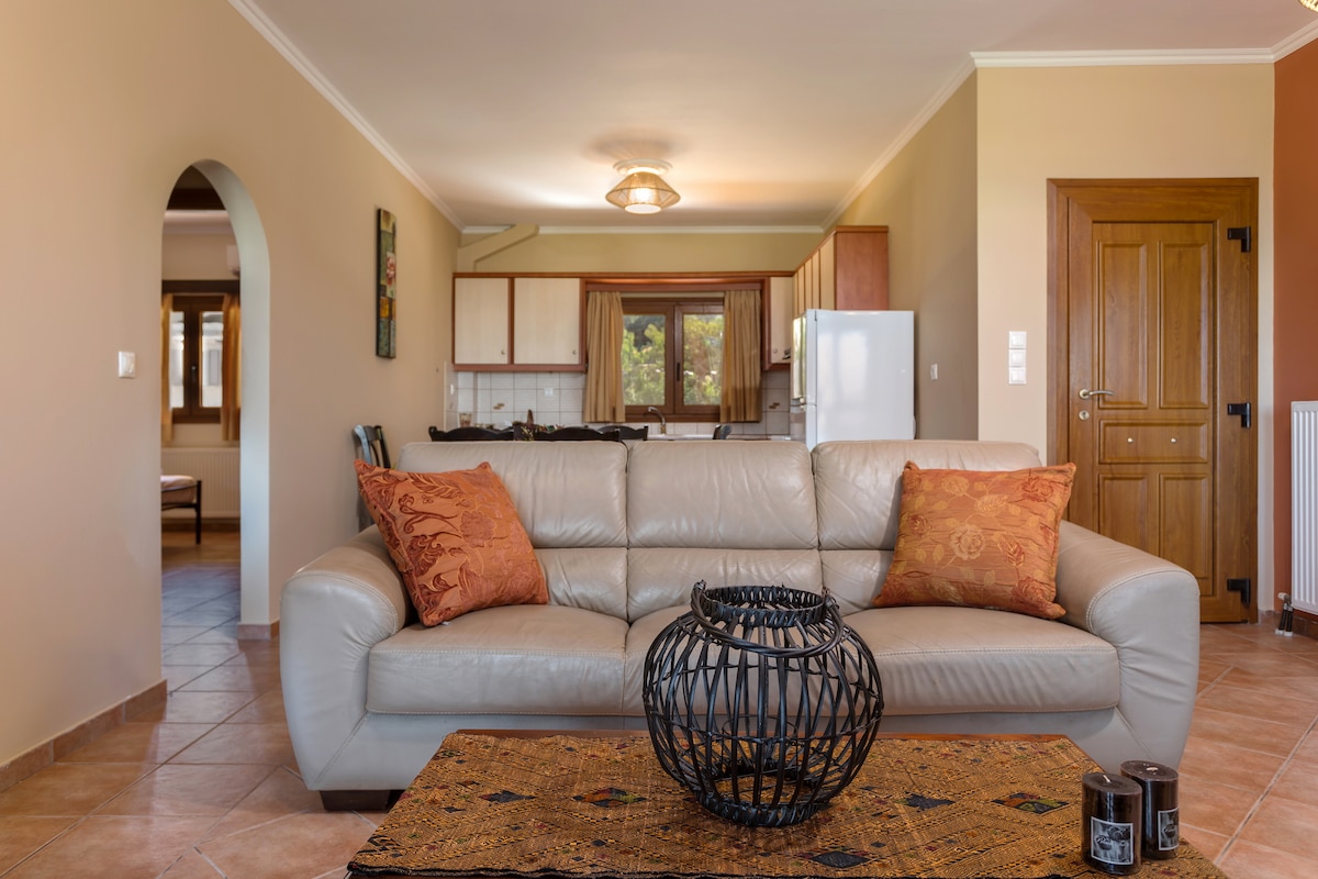 Ta imponująca nieruchomość znajduje się w Akrotiri, na szczycie wzgórza, z czystym panoramicznym widokiem zarówno na port, jak i miasto Zante. Jest dogodnie położona zaledwie 4 km od portu i głównego placu starego miasta. Meble BoConcept w salonie, sypialnia z naturalnymi systemami snu i pościelą COCO-MAT, a także miękka w dotyku, wysokiej jakości pościel Guy Laroche dopełniają wrażenia luksusowego pobytu.