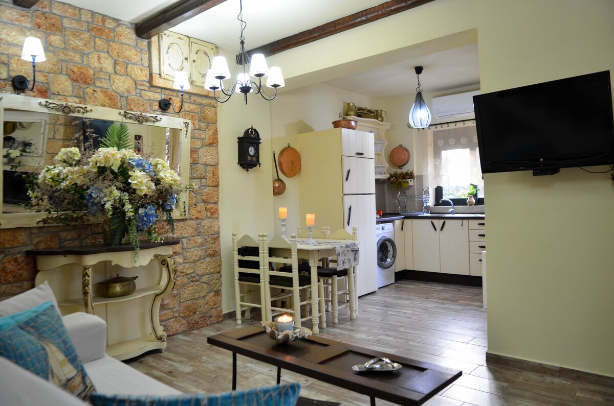 Tradycyjny kamienny dom zbudowany w 1985 roku. Zakwaterowanie znajduje się w osadzie Stoupa w jednej z najcichszych dzielnic i jest kilka minut spacerem od plaż Kalogria i Stoupa, supermarketów i sklepów turystycznych wsi. Nadaje się dla rodzin i/lub par poszukujących spokoju ducha i spokojnego snu.