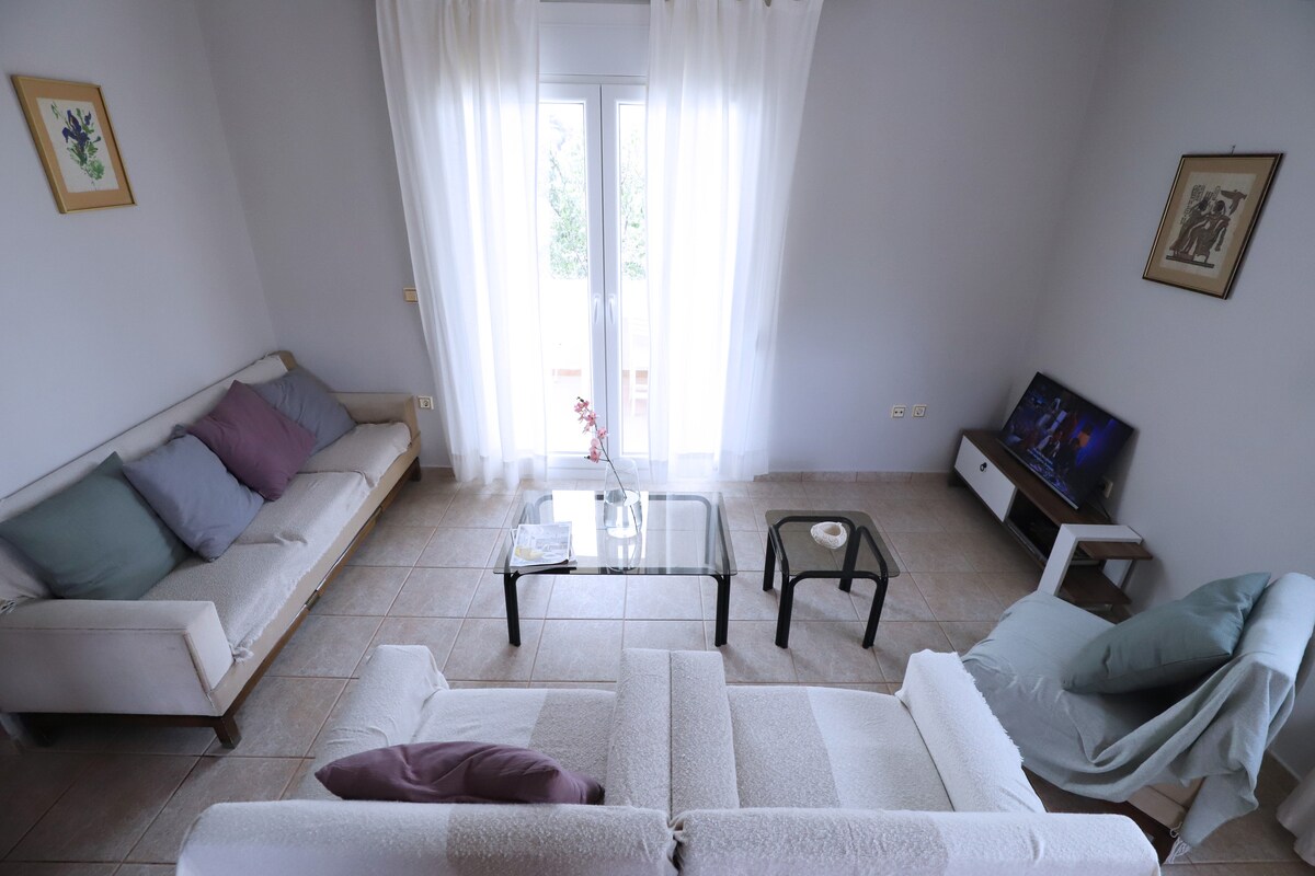 Relax in this calm and elegant place right on the beach. Ideal place for couples or small families, who are looking for a holiday home on the beach. The beach of Karfas is a sandy beach with clean, blue and swallow waters, which makes it ideal for holidays for both adults and kids. It is 15 minutes by car from the city center of Chios and 5 minutes from the airport. Also, the place of Karfas is located in the middle of Chios, which makes it an ideal place for excursions around the island.