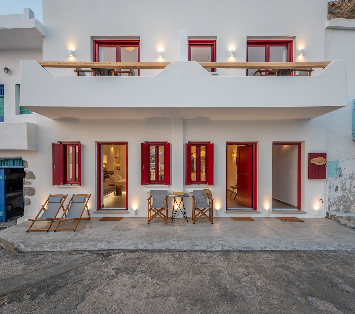 Zrelaksuj się w apartamencie Echoes Exclusive Suite w Echoes Milos, idealnym dla 2 osób poszukujących komfortu i spokoju. Rozsiądź się wygodnie w łóżku typu king-size, napij się kawy z ekspresu Nespresso i podziwiaj zapierające dech w piersiach widoki na morze. Apartament wyposażony jest w minibar, w pełni wyposażoną aneksową kuchnię na świeżym powietrzu oraz prysznice wewnętrzne i zewnętrzne, co zapewnia komfortowy i prywatny pobyt ze wszystkimi nowoczesnymi udogodnieniami.