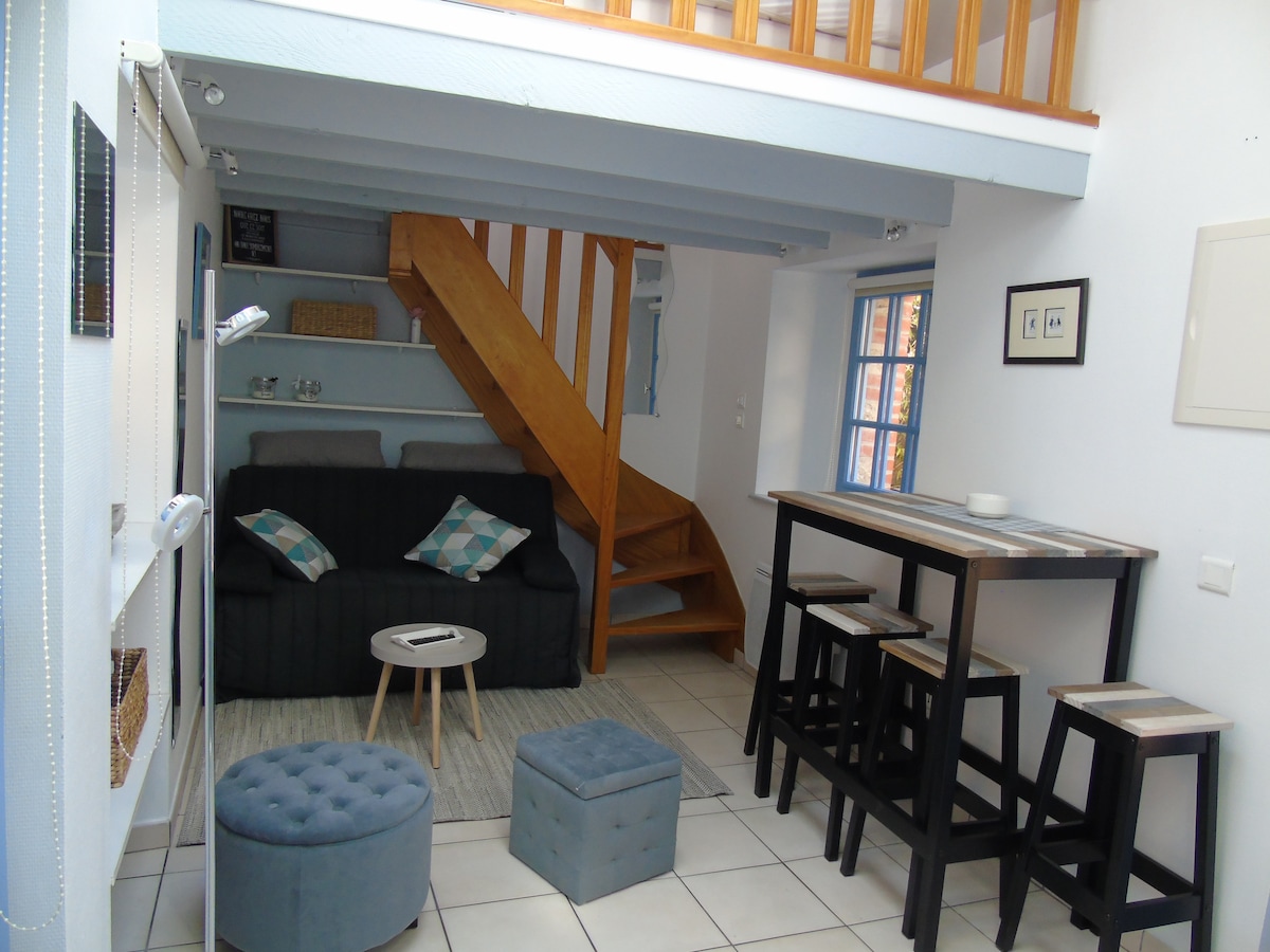 Maisonette of character with 2 private terraces and barbecue in SAINT-MALO in Paramé, near to shops and buses - 10 minutes walk from the Rochebonne beach. Możliwość bezpłatnego parkowania w okolicy. antresola: sypialnia (łóżko 190 x 140) 🔺bez dodatkowych prześcieradeł i ręczników. pokój główny: sofa bz Wyposażenie domu: WiFi , TV, kuchenka mikrofalowa, pralka, czajnik, ekspres do kawy, toster, suszarka do włosów - żelazko i deska do prasowania - leżak Zwierzęta są mile widziane