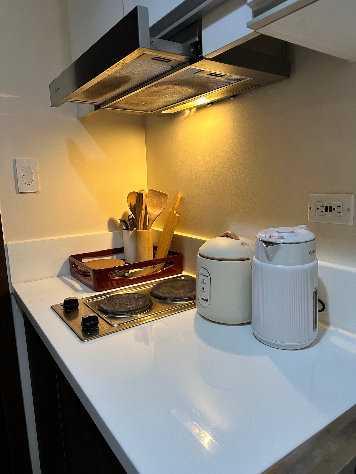Studio Powierzchnia jednostki: 37 w razie potrzeby można zorganizować miejsce parkingowe - w Bonifacio Global City - główne obiekty w okolicy - 2 pojedyncze łóżka – można połączyć – do łóżek łączonych – zapewniamy piankę do połączenia 2 pojedynczych łóżek - z pościelą i przyborami toaletowymi - z 43-calowym telewizorem Smart TV - z Wi-Fi i Netflix - z przyborami kuchennymi i kuchenką mikrofalową - żelazko/suszarka do ubrań - grzejnik