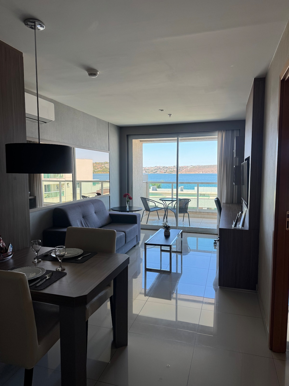 Apartament w Life Resort, z widokiem na jezioro Paranoá, z ogrodem i basenami, urządzony z myślą o dobre samopoczucie gości, z nowymi meblami, łóżkiem typu queen-size, minibarem, 50-calowym telewizorem, ekspresem do kawy Nespresso, lodówką z zimną wodą, szafkami i stojakiem na bagaż, żelazkiem, suszarką do włosów, składanym łóżeczkiem dziecięcym (na życzenie), płytą kuchenną, kuchenką mikrofalową, talerzami, szklankami, sztućcami, garnkami i przyborami kuchennymi. Dodatkowo: mydło, szampon i odżywka, pościel i ręczniki, środki czystości i WiFi.