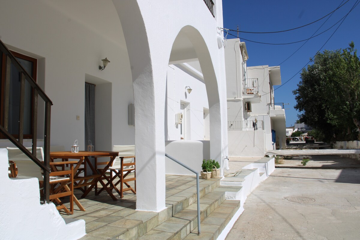First floor apartment of traditional Cycladic style with roof garden, in the heart of the settlement of Parikia, for 4-7 guests. Ideally situated, it offers tranquility and relaxation, and convenient central location. In walking distance: all the interesting sight (old market, frankish castle), bakery, shops, the port, the bus station and the taxi stand. The sea is at a few meters distance from the house, and in 2 minutes you can reach the sea-side street, where you can enjoy the sunset view.