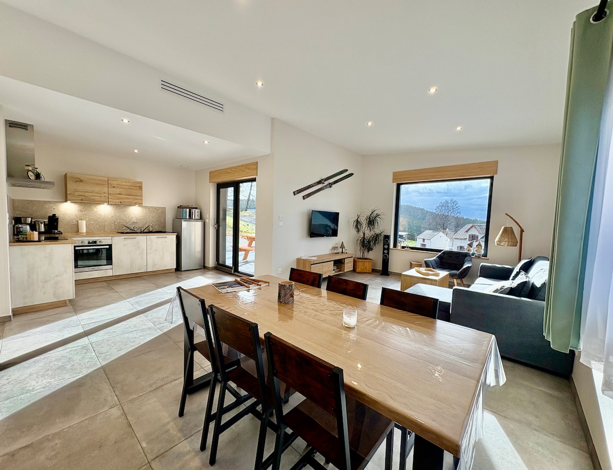 🌿 Przytulny domek z spa – przyroda i spokój 🌿 Spędź spokojny urlop w tym domku 4⭐ położonym w samym sercu Wogezów. Ten dom, zaprojektowany jako prawdziwa przystań, łączy w sobie ciepłe drewno, gustowny wystrój i uspokajającą atmosferę. Do dyspozycji gości jest jasna przestrzeń z widokiem na przyrodę, przytulna strefa relaksu oraz spa na świeżym powietrzu, które zapewni wyjątkowe chwile odpoczynku. 📍 Domek położony jest w chronionym otoczeniu i gwarantuje spokój oraz prywatność.