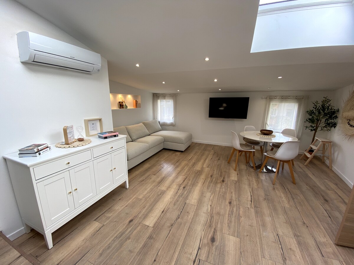 Wspaniały apartament typu loft o powierzchni około 40 m2 z wbudowaną kuchnią, lodówką i pralką, niezależną toaletą, wygodnym łóżkiem o szerokości 160 cm i rozkładaną sofą, z widokiem na najpiękniejszą plażę Bandol. Wyjątkowy widok na morze, na plażę Renécros, port i centrum miasta w odległości spaceru, prywatne miejsce parkingowe z ładowarką do samochodu elektrycznego, nowy obiekt.