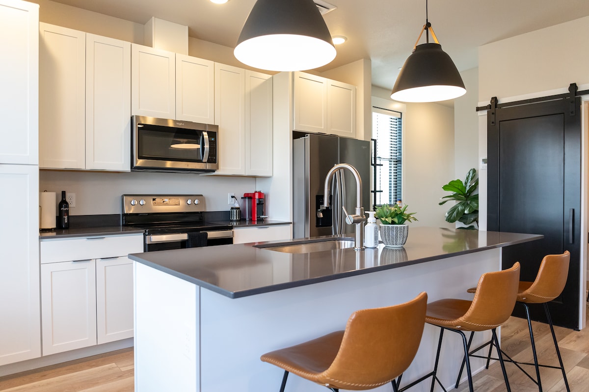 Przytulny i prywatny dom z 2 sypialniami, który został odnowiony i zmodernizowany dla Airbnb. Jest tu prywatna wanna z hydromasażem i sauna, w pełni ogrodzony podwórko oraz ogrzewany taras. Wszystko prywatne, nic wspólnego. Nowe urządzenia, a także 65-calowy telewizor Samsung, ładowanie przez gniazdko i USB oraz szybki internet dla wszystkich potrzeb związanych ze streamingiem. Wygodne nowe łóżka typu queen i wszystkie nowe meble. Sklep spożywczy – w odległości około 2 przecznic Sklep spożywczy – 1,2 mili Lotnisko – 3 mile Centrum miasta – mniej niż 1 mila