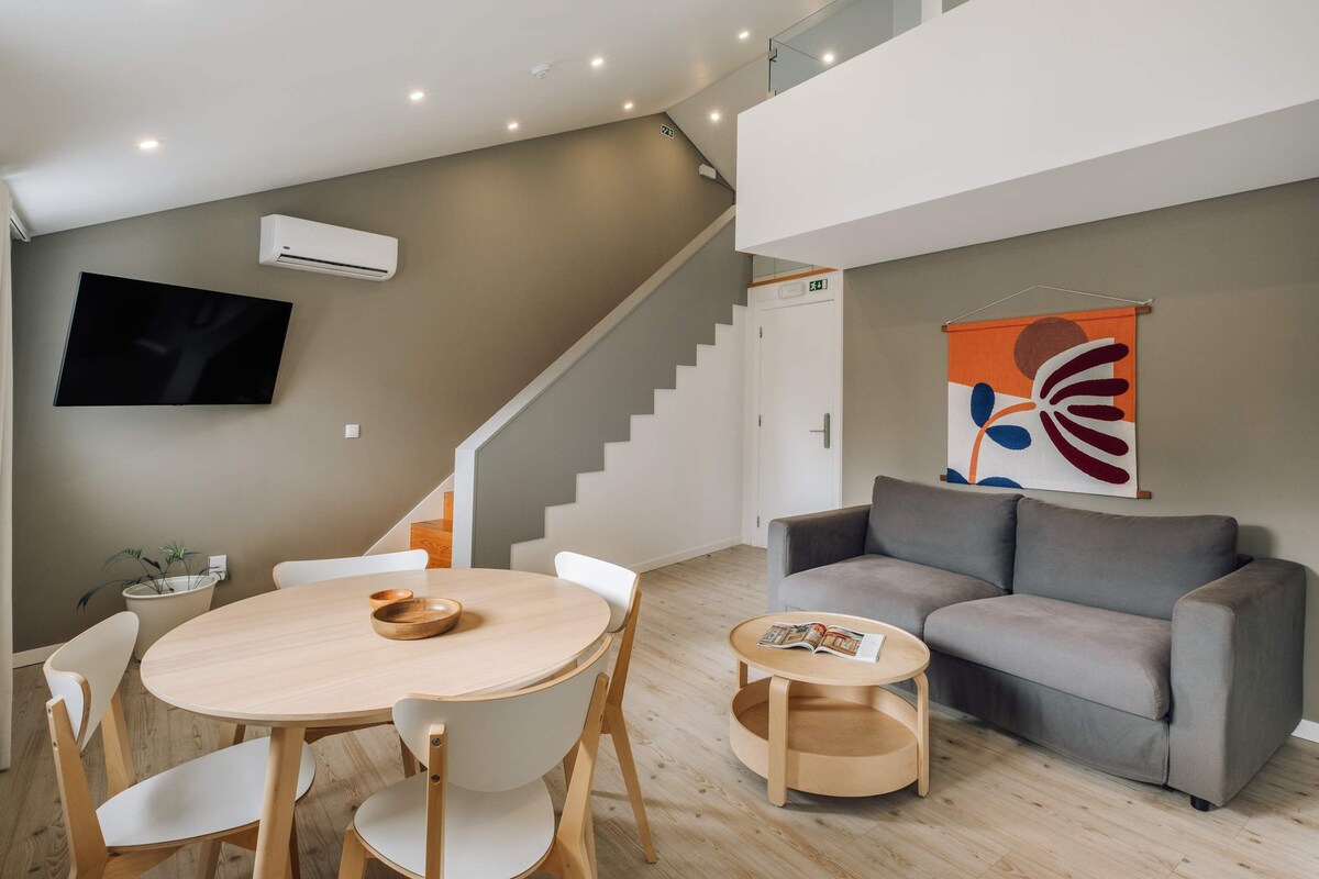 Stylowy apartament z 1 sypialnią na dachu z prywatnym tarasem i pięknym widokiem na zamek Sao Jorge i rzekę Tag. Położony w samym sercu Lizbony, w Marques de Pombal, w pobliżu symbolicznego parku Eduardo VII i Avenida da Liberdade. ⚠️UWAGA: w sąsiedztwie prowadzone są prace budowlane, które mogą być hałaśliwe w ciągu dnia** Do apartamentu na dachu prowadzą zewnętrzne spiralne schody. Ze względu na schody należy pamiętać, że apartament ten nie jest odpowiedni odpowiedni dla osób o ograniczonej sprawności ruchowej.
