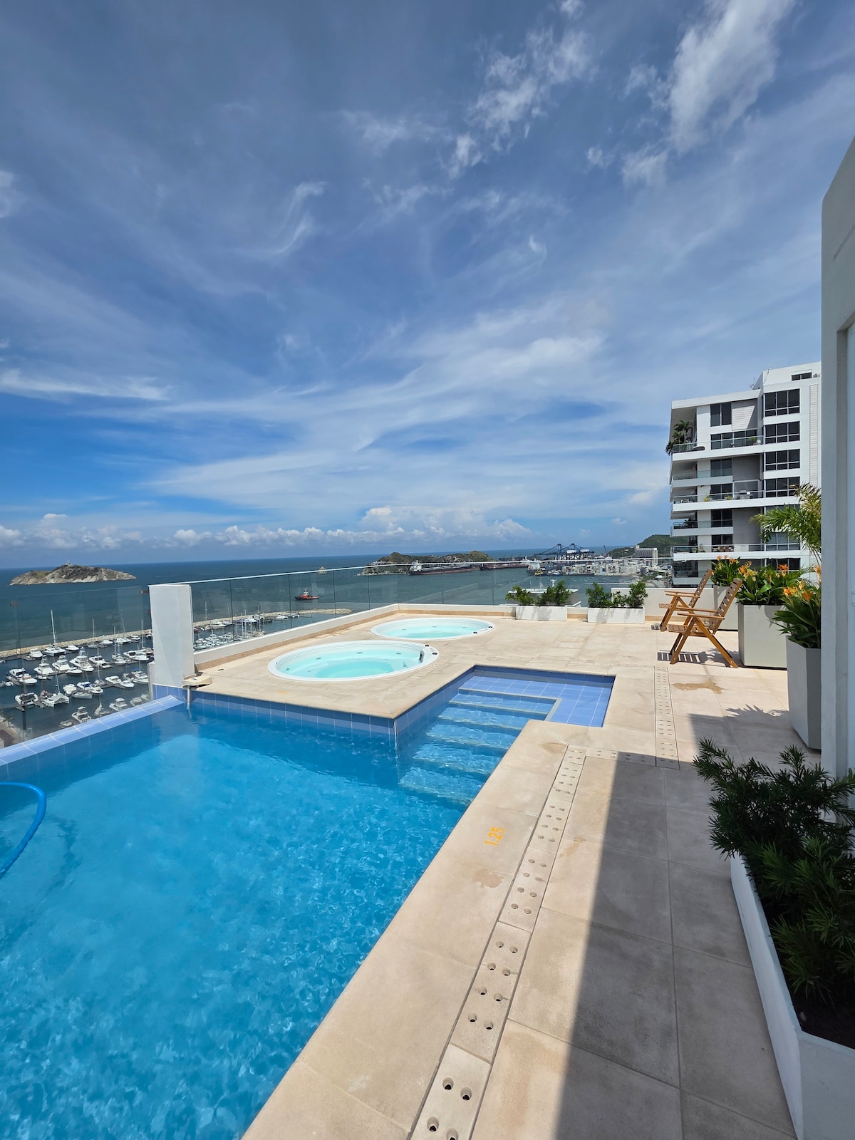 Nowoczesny, w pełni wyposażony apartament z jedną sypialnią w samym sercu Santa Marta, z pięknymi zachodami słońca nad wodą i różnorodnymi udogodnieniami, w tym basenem, sauną i siłownią, aby Twoje wakacje były tak komfortowe i relaksujące, jak to tylko możliwe. W odległości spaceru od międzynarodowej przystani Santa Marta i jej pięknego deptaka, który zaprowadzi Cię do najstarszego historycznego centrum kontynentalnej Ameryki, gdzie znajdziesz wiele restauracji i tętniące życiem życie nocne nocne.