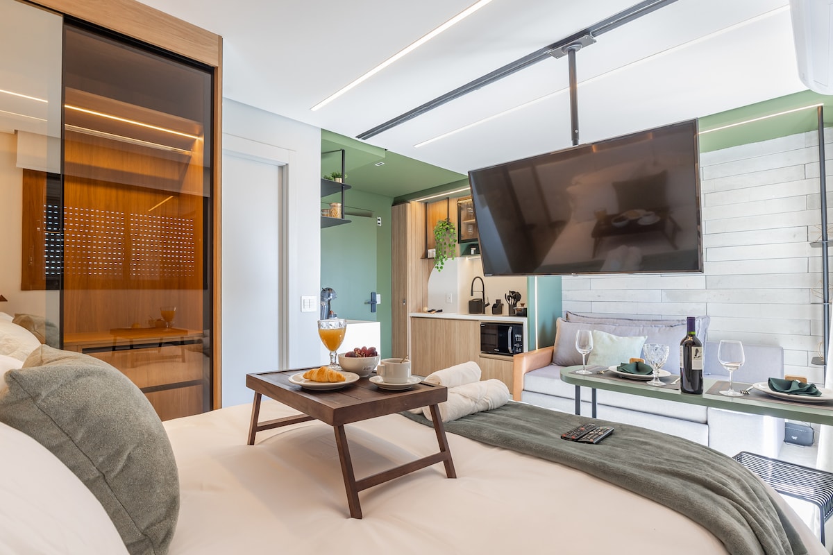 Bezkonkurencyjna lokalizacja w najbardziej pożądanym hotelu w Vila Olímpia! Przed Shopping Vila Olímpia i kilka kroków od Av. Faria Lima, Rua Funchal, Shopping JK Iguatemi i Parque do Povo. Mieszkanie jest w pełni wyposażone, abyś poczuł się jak w domu, ze wszystkimi udogodnieniami i usługami marki Radisson. Wszystko wokół Ciebie: doskonałe restauracje, sklepy, targi i szybki dostęp do lotniska Congonhas. Idealny wybór dla osób poszukujących praktyczności, komfortu i wyrafinowania.