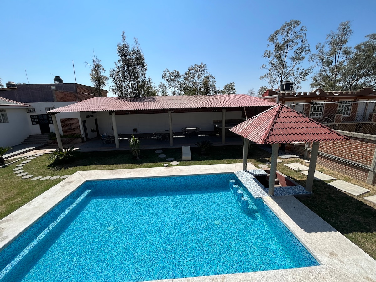 Quinta Chaparrita, Dom z CAŁKOWICIE PRYWATNYM PODGRZEWANYM BASENEM. Ciesz się przyrodą z rodziną/przyjaciółmi. Ciche, bezpieczne otoczenie, z pobliskimi sklepami i fantastyczną lokalizacją! 2 duże sypialnie + antresola. Parking dla co najmniej 6 samochodów, wyposażona kuchnia + salon + ZASIĘG WI-FI. Piękne elementy zewnętrzne, 1 łazienka z toaletą w środku + 2 łazienki bez toalety na zewnątrz. Jesteśmy 20 minut od Cristo Rey, stolicy Guanajuato i jej Mummies. The Outlets of León i to, co najlepsze w turystyce w Guanajuato.!