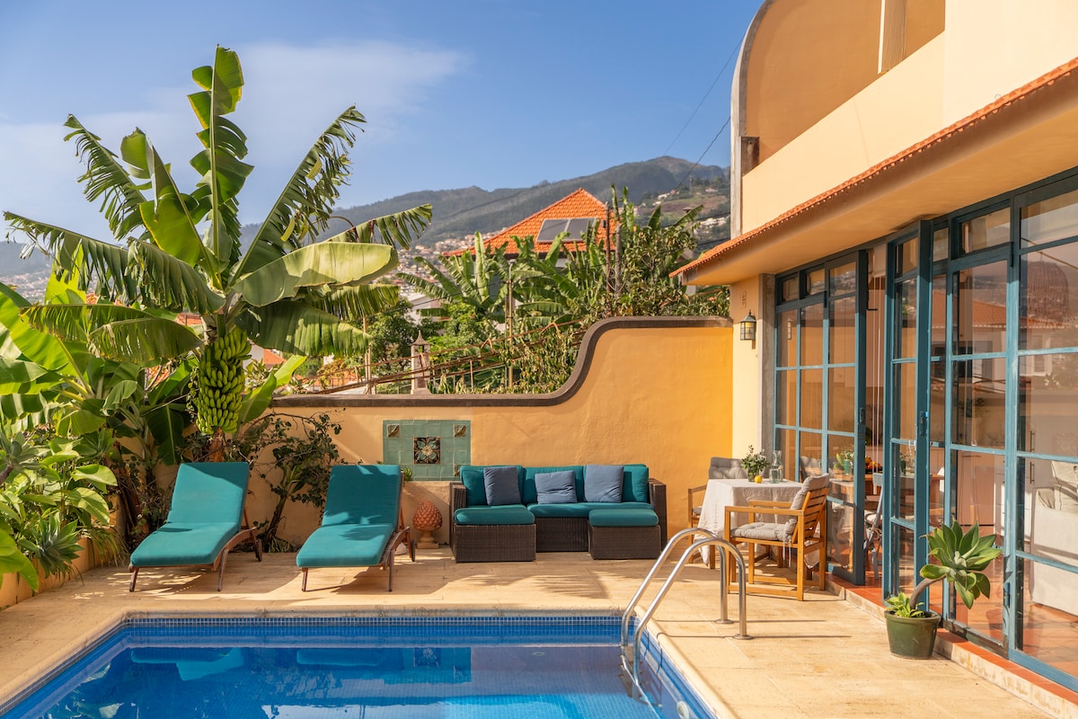 Domek malarzy z basenem i widokiem na ocean w Funchal